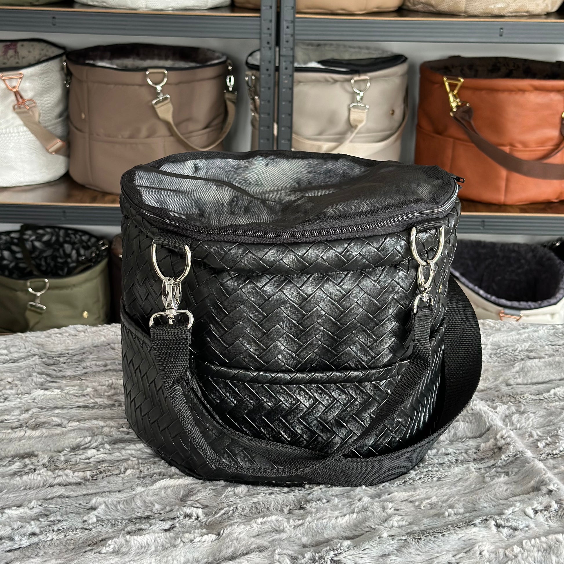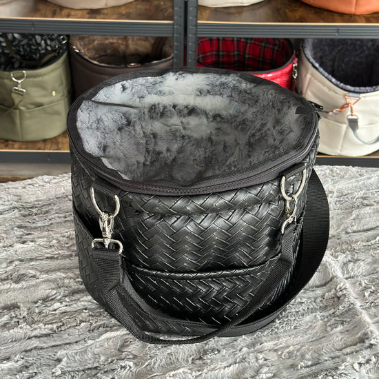 Materialbeschreibung: - Kunstleder Raute black / Kunstfell Amata / Traveller + Erhöhung / Hardware Silber